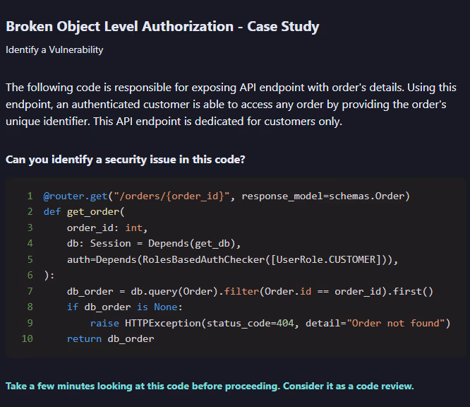 Practice reviewing real-world API code to uncover security flaws and misconfigurations.